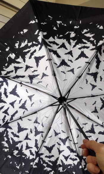 Promising review: "I ADORE vampires, Halloween, and all things bat-related. I had to have this umbrella. The feel of this umbrella makes it worthwhile. The rubbery texture assures me it will keep me dry. That's not all. Hang the umbrella up, and it looks like a sleeping vampire! Too cute!" —Rae Rae