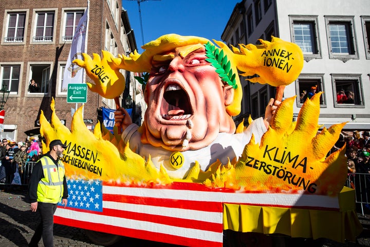 Donald Trump was once again the target of satirical mockery at the annual Rose Monday carnival parade in Düsseldorf, Germany. One effigy of the president, with “ICE” representing Immigration and Customs Enforcement written on his sleeve, depicted him punching Jesus Christ, with “Love & humanity” on his shirt, in the face: Another float showed Trump fighting with Russian President Vladimir Putin to devour Europe: Putin was also depicted knifing satire: An image of the late convicted sex offender Jeffrey Epstein, a onetime close associate of Trump, was turned into a vampire with messages on his wings reading “everyone protects the perpetrators” and “everyone ignores the victims.” See how Trump has been depicted on floats at the same carnival since 2016. By entering your email and clicking Sign Up, you're agreeing to let us send you customized marketing messages about us and our advertising partners. You are also agreeing to our Terms of Service and Privacy Policy.