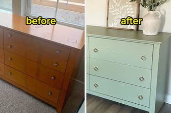 We hope you love our recommendations! While every product is independently chosen by our editors, BuzzFeed and our publishing partners may collect a share of sales or other compensation from the links on this page. You can read more about how our affiliate partnerships work in our Editorial Standards & Ethics Guide. If you hate wasting money on useless junk, know that these things will never disappoint you. Promising review: "These are the best for half of any round fruit or vegetable. I'm loving them and no more messing around with so many small plastic bags. They don't seem to pick up the smell of onions either, which is a big plus! Easy to open and close, keep food fresh, and seem to be durable. I've had it for a few months now and I'm going to give some away as gifts to family and friends!" —Amazon Customer Get a four-pack from Amazon for $12.99+ (available in three color combinations). OK, you DO have to remember to spill out the water while you unload the dishwasher, but I believe in you! Promising review: "I have been looking for a dishwasher done indicator to use on a stainless-steel front (no magnets). This is the BOMB. NO moving parts. No flimsy clips. No tape, glue, or magnets. Simply slip it over the edge of the bottom basket, and you are good. The sturdy clip does not flex, so there is no wear and tear. The action of the washer fills up the tube. DONE. The first time you open the door after washing, tip out the tube, and you are ready again. Hooray...something that works." —MRMACHINE of Raleigh Promising review: "Love this product! I have very fine and silky hair, and this provides a great root boost to help me style my hair. It is not sticky or stiff and perfectly provides the extra oompf my hair needs! Very easy to use, lift your hair and spray it on. Holds well all day and has a neutral smell." —Ann G. Get it from Amazon for $12+ (available in two sizes). Country Chic Paint is a family-owned small business that specializes in all-in-one paint. Promising reviews: "I've bought a total of four of these things. I went on a kick of painting all of my generic black/dark brown Ikea furniture. I used this on both the shiny/smooth furniture and the wood furniture, and it worked well on both of them. It definitely worked better on the wood furniture, though. The paint was unexpectedly very easy to use, and the color came out a LOT prettier than expected! It was easy to clean off my hands and brushes, and the paint came right off my clothes in the wash as well. Overall, I'm very very pleased with this paint and will purchase more if I need any crafty paint in the future." —Anna "I saw this on TikTok and it looked so easy. I've hated my TV stand since I bought it. It was all black and just brought the room down. I used two coats and it is perfect! 10 outta 10 recommend!" —Gig94Em Get it from Amazon for $29.95 (available in a variety of colors). The high-density sponges are squishy on the inside with an emery layer on the outside. They can be cut into smaller chunks for cleaning nooks and crannies. Promising review: "Nice and thin. You'll find so many more uses for these around the house than just getting stuff off the underside of cookware! I had hard, scaly water deposits on the glass surrounding our powder room faucet (one of those fancy, highfalutin modern-looking things). I've tried everything for four years to get this stuff off. One day I thought, maybe i'll try my sponges. Took it all off super easily!!!! Faucet looks like new. My only rec is to spot-test your item first before using it because it will scratch certain surfaces if you scrub too aggressively (for example, it gets the burned-on, weird stuff off of the bottom of my fave Our Place pan, but I rubbed too hard in one spot and it took the color right off lol)." —Hoarder Get an eight-pack from Amazon for $7.99+ (available in two sponge thicknesses). Expect your dog to shed a ton after the first wash and then less over time. Get a dog dryer here. Promising review: "I used to be a professional dog groomer, and this stuff works!! Nothing takes away all the shedding, of course, but this stuff and the conditioner really make a huge difference. The key is mostly in the conditioner; you rub it into the coat, then use a dog dryer (NO heat) to blow the conditioner into the coat backward. Next rinse out completely and again use the dryer. I like the fact that the ingredients are not full of all kinds of chemicals." —Jon Get it from Amazon for $10.82+ (available in three shampoo styles and conditioner in various sizes). Soak your hair in this elixir for 30ish minutes up to three times a week. It works for all hair types. Promising review: "I just can't believe the difference in my hair!!! I'm in my '60s, and my hair was dry and dull because of my medications. I just hated my hair. I bought this not expecting too much, but was I wrong!!!! I left it on for 30 minutes because I wanted the best result possible. Wow!! My hair feels wonderful, it's fuller and thicker looking, body galore, and I just can't quit looking at my hair. I will NEVER quit using this!!!" —lucymae Promising review: "Earlier this week, my dentist advised that I get a bite guard. The cost was $700, but I could have had one for $500. I decided to try a less expensive alternative. I purchased these and woke up this morning pain-free. They are comfortable, and I had no problem falling asleep. Pain is gone, and I saved $500. I would say that's a win-win." —Charles Get a pack of 10 from Amazon for $19.54 (available in larger packs and with included dental floss). Promising review: "We purchased this to fill some patches in our backyard that were damaged by our puppy. This seed works like a charm. The one caveat is that you really do have to water it a bit every day. Once it takes off, though, it grows pretty quickly! Within one week of planting this, we had one-inch long grass blades. One month later, all the patches are gone. Highly recommended!" —J
