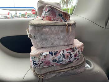 We hope you love our recommendations! While every product is independently chosen by our editors, BuzzFeed and our publishing partners may collect a share of sales or other compensation from the links on this page. You can read more about how our affiliate partnerships work in our Editorial Standards & Ethics Guide. BRB, adding the portable blackout curtains to my own packing list. Promising review: "10/10 recommend this for baby ear protection! We took our baby on his first flight at 4.5 months, and he slept the entire four-hour flight!! I'm thoroughly convinced it is because of the noise-canceling ability of this product. The only downside is they do look a little ridiculous (in an absolutely hilarious and 'Omg, I want to squish those baby cheeks' kind of way). Everyone on the plane said our kid looked like a little linebacker, but they were all so impressed that he didn't cry once or even wake up during takeoff or landing! If you're a new parent or a seasoned parent traveling with a little one, do yourself a favor and buy these!" —Mandy Get it from Amazon for $29.99 (available in five colors). Promising review: "These are great! I got so tired of trying to clean off restaurant tables and high chair tops. I was bringing along a reusable silicone placemat, but it didn't always stay in place. These are easy to apply — tear off the two strips and adhere directly to the table surface. The strips are sticky — be careful, or they will stick to themselves as you place them down. It stays stuck to the table and easily comes off when you are ready to go. I also use these for airplane travel — put on the seat tray that we know isn't clean!" —S Get them from Amazon for $17.39 for a pack of 60. Promising review: "Got these for our first trip with my 10-month-old. They held all his stuff and made it quick and easy for him to access it! After we returned from the trip, I kept one in his bag for extra clothes, one in the car with a quick kit of everything I might need, and used the smaller one as a medicine kit. Plus, the pattern is super cute!" —Amazon Customer Get it from Amazon for $24.49+ (available in nine colors/patterns) These are my family's go-to bandages because they *actually* stick and the tins are so convenient to throw in bags and car gloveboxes. Promising review: "This is such a cute and compact first aid kit. There are a TON of bandages inside. The styles are great, something for even the pickiest kids (like mine), haha. Great quality bandages; they stay on well, they are flexible, and just so darn cute. It also includes lots of other great things to have when you are traveling, like ibuprofen, ointment, alcohol, and cleansing wipes." —Bunny2012 B.box is an Australian brand (tell your kids Bluey says hi!) with a whole line of durable, easily washable kids' utensils. Promising review: "These came in very handy for my toddler's daycare snacks. They asked for two snacks a day, which meant having a single lunch box would get messy, and the food would get soggy. I bought two of these, and so far, I have had no complaints. Great for travel snacks as well!" —C. Castro Get it from Amazon for $16.95+ (available in 13 colors and packs of two). Promising review: "I got this for a trip because I use the normal Boppy all the time to nurse. This has saved my life! It’s the perfect height, super compact, easy to use, and I can take it with me everywhere I go with my baby. We go to church and friends' houses all the time, so I’m often nursing her when not at home, and this has been amazing. I love it, and it was the best baby item I have purchased." —Becca Tushbaby is a woman-owned small business that also donates its products to hospitals across the United States. We love to see it! P.S. If you want more wiggle room in your TushBaby, they sell an extender that gives you up to 71 inches of space! Promising review: "I LOVE, LOVE, LOVE the Tushbaby!! It makes it easy to go anywhere with the kiddo and not have to take out the big stroller. I bought this to travel and make it easy to get through the airport, and it did just that! My daughter was comfortable on it the whole eight-hour day. The storage on the sides, the front, and under the seat is so wonderful for keeping all her favorite snacks, bottles, toys, diapers, and wipes right on you without having to put her down to access them. The pocket on the side holds my phone and cards, so I don't have to bring a purse with me. I cannot say enough amazing things about this product. If you are thinking about it, don't hesitate, just do it. You will be glad you made this purchase!! Four of my mom-friends have bought this after trying mine. :)" —Ashley Whiting Get it from Amazon for $61.19+ (available in six colors/styles). Promising review: "This product is a baby/toddler must-have and one of my absolute favorites! Save money by using the reusable pouch instead of buying from the store. I’ve put from baby purée, yogurt, and applesauce to smoothies and baby cereal in these! Very easy to clean! Baby is not able to squeeze them everywhere like the store-bought pouches. My son loooovvvesss pouches, and this is so easy to pre-fill, store in the fridge, and take on the go! Thank you for this product!!!!!!" —Amazon Customer Get a two-pack from Amazon for $21.24 (available in four colors and in packs of four). Promising review: "These are wonderful. I only wish I had bought them sooner and saved myself the frustration of having to take apart the car seat more than necessary. These hold up in the washing machine and come clean easily. They are pretty absorbent and soft." —Alison R. Get it from Amazon for $8.99+ (available in two styles, two colors, and packs of two). Saw one of my mom friends with it and INSTANTLY added it to my cart as a gift to myself. She uses it for note-taking at work *and* for keeping track of all her kiddos' various things. As someone who loves tactile moments, I'm thrilled to have something that is the perfect 