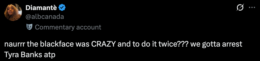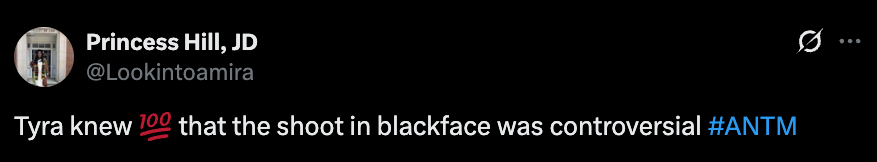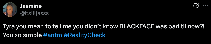 Blackface was bad even in the 2000s, Tyra.