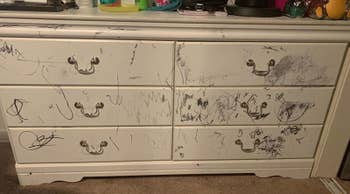 We hope you love our recommendations! While every product is independently chosen by our editors, BuzzFeed and our publishing partners may collect a share of sales or other compensation from the links on this page. You can read more about how our affiliate partnerships work in our Editorial Standards & Ethics Guide. Things that are majorly bothering you right now could include ugly rental kitchens, saggy couch cushions, and chocolate milk stains on your cream carpets. If you’re staring at scuffed walls, saggy couch cushions, mystery carpet stains, and a washer that smells…you’re not alone. These products are here to turn that frown upside down (and maybe save you your security deposit). We found everything from peel-and-stick wallpaper and drill brush attachments to fabric shavers, leather cleaner, and washing machine cleaning tablets that reviewers swear by. Scroll ahead for the clever fixes that make your place look way less chaotic with way less effort. Promising review: "So I’m a baking soda girlie. I’ve never met a mess or stubborn stain I couldn’t tackle with a little elbow grease and baking soda. This product has been on my radar for a while now, but I haven’t gotten it because I’ve been getting by fine, the way I always have. However, recently I inherited a pitcher that lived on my grandma's gas stove. I brought it home and realized how dirty it actually was. I tried to do the baking soda paste. I tried to scrape the soot off with a knife, but it was not working. This was 30 years of soot and wear. It’s a coffee percolator, but it was used as a stove decoration. I finally decided to try this stuff because my baking soda and elbow grease method was not working; it still took a little work, a little scrubbing, but this product cleaned it. There are no scratches in the enamel, everything looks like it should, and I just want to say that when all else fails, this product is not a gimmick. I’m not a product person; I turn to elbow grease and my mom’s advice to solve my cleaning problems. I’m here to tell you to TRY THAT, and it should work. It is when all else fails, TRY THIS. There’s magic in here." —Allison Get it from Amazon for $4.79+ (available in packs of two). Promising review: "Where have these been all my life? We purchased a couple of beautiful charcoal-gray (dyed) sheepskin rugs for both sides of our bed. It used to feel really nice to get out of bed and set your feet on them. But after many years and a couple of dogs, my reaction to putting my feet down is, 'Ew. What the heck did I just step on?' Because of the dye, we can't just wash them or get them too wet. And I'm kind of lazy and forgetful. (Meaning, I've been thinking of taking them to a dry cleaner for years — but how much will that cost?) After our puppy had an accident (the worst kind of accident) on one, I knew I had to do something. These rugs weren't cheap, so tossing them wasn't an option. I cleaned up the 'accident' as best I could, but that left the spot feeling kind of dry and crunchy. So, after reading and googling, I decided to try one of these wire wool brushes. HALLELUJAH! It took some muscle to thoroughly brush each rug, but wow, not only did it re-fluff and revive the wool, but it also pulled up a lot of loose dirt and anything that was stuck to the fibers. I really wish I had gotten this brush sooner!" —Renee The battery-operated style requires 2 AA batteries, which are not included. Promising review: "OMG!! This fabric shaver is the best thing since sliced bread! I was skeptical at first, but then today, I shaved all of those pesky pills off one of the twin mattresses in our guest bedroom that had pills all over it. It worked so well and was so easy I started taking sheets off of all our beds and starting 'shaving' the 'pills and pulls.' If you have fuzz balls on things that look so horrible you want to throw them away, don't! Get this little fabric shaver and 'shave' away...lol." —MK Get it from Amazon for $8.95+ (available in white or lavender). Check out our full Conair fabric defuzzer review to learn more! Promising review: "Two months ago, we got a 6-month-old puppy who has needed some time to get adjusted. That included more than a few accidents in our living room and on his bed. This machine has made cleanup of everything so much simpler, and I love that it's deep cleaning and has a nontoxic pet cleaner so that our not-so-little puppy isn't harmed through exposure or smells. Also helpful since my teenage sons like to camp out on the couch with their friends on long weekends, and our couch gets that fresh, clean smell in an hour." —Kindle Customer Promising review: "Great for couch pillows! The pillow insert in the pillow cover was just not fluffy enough. I used this stuff, and it perked right up! Love how it turned out." —Botanical Optimist Get a 5-lb bag from Amazon for $24.99 (available in larger sizes). Some reviewers even use it to redo their countertops or sinks, although you might want to use an acrylic sealer afterward if you decide to do that! It's fantastic for vintage appliances, too, according to one reviewer. Promising review: "Oh my goodness! This stuff is amazing! I remodeled my bathroom, and the washer and dryer looked terrible. One coat of this and they look brand new! I’m going to add another coat today just to make it extra durable." —L. Hornberger Includes six repair markets, six paper-wrapped wax sticks, and one wax stick sharpener packaged in a blister card. Promising review: "I. LOVE. THESE. MARKERS!! I bought this because I was using a brown Sharpie on my coffee table, which was getting chips from normal wear and tear. The Sharpie would always rub off over time, and of course, it was not exactly a color match. I bought these on a whim, and WOW— they are amazing! Even the black worked SO much better on my black bedroom furniture than a normal black Sharpie. These are buildable, so you can start with a semi-transparent, lighter 