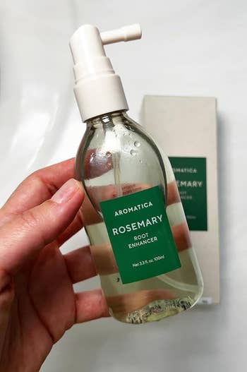 Promising review: "I have been trying lots of different hair products over the last three years to help my scalp and coarse hair that has gotten drier from birth, hormonal changes, and now being in my late 30s. This rosemary root spray has to be in my top three hair products thus far because it has given me results. I spritz and rub or brush into my scalp before a shower on some days that I don’t shampoo, but feel like my scalp could use a refresh. I have significantly noticed that I have a less itchy scalp after using this consistently for 2+ months now. I used to have 1–2 itchy spots from dryness, which was a problem for at least a year, but now I don’t get them anymore. Some people say the spray is like a dry shampoo alternative; I’ve never used dry shampoo before, but I totally agree! I feel like I can go in between washes with a cleaner feeling scalp and hair roots. After spraying, it absorbs and doesn’t leave any greasy residue. There isn’t a very noticeable smell, and overall, it seems watery and not oily. Love how clean it makes me feel and would definitely add this to my simple haircare routine!" —Jess C