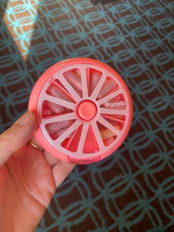 Promising review: "I love these pill organizers! Makes morning medication taking so much easier. Seven slots for the week with a push button in the middle to rotate to the slot! Very compact. Not a lot of space for a bunch of pulls. Perfect for those who only take two or three medications at a time. Love this for my child who has a medication routine. Allows him to access and do it on his own with the easy-to-use design!" —Mallory