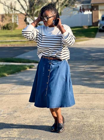 We hope you love our recommendations! While every product is independently chosen by our editors, BuzzFeed and our publishing partners may collect a share of sales or other compensation from the links on this page. You can read more about how our affiliate partnerships work in our Editorial Standards & Ethics Guide. We've got pieces to get you through the long-awaited winter thaw all the way to that spring break vacay you booked months ago — and all under $80. 😭 Unless otherwise specified, all sizes in this post are listed in women's. Promising reviews: "Love the stretch the fabric has, as well as the playful and bright print. I normally wear a 26–28, and it fits really well." —Rosey Posey, size 5XL "I give it a 10/10. I'm 5'7", 240 pounds. I purchased this beauty in a size 2XL. This dress had the curves, curving. I was concerned about the V-neck. Being large-breasted doesn't mean I want exposure. But it fit perfectly. No cleavage showing here..." —baby66, size XXL Get it from Amazon for $24.99+ (available in sizes L–5XL and 30 colors/prints). Promising review: "In love with these sweaters! I actually have bought several colors and keep them in my fall rotation, always. They are comfy and so soft. The size is true to size and the color is so warm and vibrant!" —Kinsey Kirchmyer, size XXL Get it from Amazon for $19.99+ (available in sizes XS–3XL and 44 colors/prints) Shaperx is a small biz offering an assortment of compression bodysuits. Promising review: "Life-changing shapewear for plus-size! FYI I NEVER leave reviews. For reference: I’m 220 lbs, 48DDD chest, apple shape body, and no ass whatsoever. I’ve been looking for comfortable shape-wear that isn’t too tight and I finally found it. I LOVE this set. I feel secure but I’m not uncomfortable. I purchased the 2XL/3XL because I didn’t want it too tight. Alsoooo, I’ve worn it with and WITHOUT a bra and I feel great! I ALWAYS wear a bra and I’m this I feel comfortable and confident without one for the first time ever. I’m purchasing more because I’m just sooo obsessed!" —Joely Kaylor- McCallister, size 2XL/3XL Get it from Amazon for $38.99 (available in sizes XXS–4XL, three styles, and eight colors). Promising reviews: "So cute and comfy. I'm 5'3 and 220 with a tummy, and it fit nicely, even my height! Loved it so much I ordered a second in another color. Great versatile piece for a transition wardrobe (weight loss)." —B, size XXL Plus "Love the stretch and soft material, I’m usually hesitant to buy clothes anywhere except Torrid, but I am happy with my purchase. I get a lot of compliments when I wear this skirt!" —Nicole, size 3XL Plus Get it from Amazon for $19.99+ (available in sizes L–5XL and 15 colors/prints) Promising reviews: "I have gotten rid of my old, washed-out, misshapen tees. Tee Rex shirts have taken their place. They wash beautifully, resist wrinkles, and fit perfectly. US understands all body types and creates garments to fit us all!" —Sallie R., size M (18–20) "I find myself wearing these tees several times a week! Just the best tees. Soft, comfortable, nonclingy. Long enough without being sloppy. Lots of choice in color and style (V, crew, short/cap/long sleeves, stripes, plain). I've been wearing them for years!" —Frances C., size L (22–24) Get it from Universal Standard for $50+ (available in sizes 00–40, two necklines, short and long sleeves, and 24 colors/patterns). BTW, some reviewers suggest sizing down because the inseam runs long and the waist can run large! Promising reviews: "I'm in love with these jeans! Super comfortable... They have stretch and lightly shape without feeling tight or clingy. They are medium-weight, not too thin but not heavy or stiff. Even on my curvy (size 22W) figure, they give the straight wide-leg effect I was going for. These are longer than most of my jeans. I'm 5'7", and I can wear the regular length with flats (barely), but the length looks better and falls straighter with a slight heel." —Kristi Fisher, size 22 "These are the type of loose fit I like without looking like a plastic bag. The fabric is the softest jean material ever, and it is thick enough for comfortable winter wear! Color just right!" —ravenswing, size 22 Long Get it from Amazon for $35.20+ (available in sizes 14–30, three inseams, and three washes). Promising review: "This is absolutely beautiful, I definitely want other colors. The material is a nice thickness, and it’s quite well-made. I’m 5'8 and 198 pounds, 41D, and according to the reviews and measurements, the 16 was just right. The arms could be a little wider for the size, but honestly but it will be fine. Love the length of the skirt and sleeves. I bought it for work and can’t wait to wear it. Definitely conservative, which is what I generally wear." —SparkleMeHappy, size 16 Get it from Amazon for $22.99+ (available in sizes 0–22 and 21 colors) Promising reviews: "I brought this jacket when I went on an Alaskan cruise. I'm glad I did! It was very warm, lightweight, comfortable, and didn't break the bank. The size, fit, quality, and functionality were exactly what I needed. Also, the jacket wasn't tight, and that was very important because I needed the stretchiness so I wouldn't feel confined. Try it for fall and winter." —Jahel Bowles, size XXL Get it from Amazon for $35.22+ (available in sizes XS–3X, petite fits, and dozens of colors) Promising review: "The fabric is thick with slight stretch. Smooth fabric. The buttons are well-reinforced and classy. Color is nice, I got the grape and cream color. The light one is a bit see-through, but that's ok. I have 40G and bought size 20, it is perfect. No pulling on the breasts, there is even a second button lining to avoid the gaping that occurs with big boobs in button-downs. I'm typically a size 18 in tops, but I size up in button-downs to avoid gape. I can see these shirts having longevity in my workwear rotation." —Brenda A. Get it 