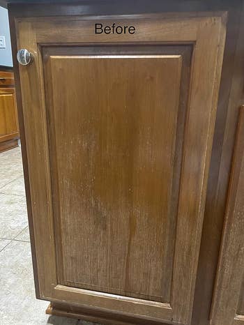 Promising review: "I have tried numerous products on my wood kitchen cabinets, and nothing has worked. You can see from the photos that they were in really bad shape. I applied this product and let it sit for 45 minutes before I wiped the cabinets down. I can’t believe how well it worked! If this didn’t work, I figured I would have to refinish or paint the cabinets because they looked so bad. I’m so glad I tried it! It has saved me a lot of time and money!" —nicole feather