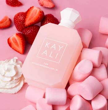 I love trying out new fragrances and am a sucker for anything marshmallow — flavor, scent, etc. I find it all delicious! For starters, this Kayali spray bottle is so pretty. I love having this lovely little pink bottle shown off on my rotating bathroom organizer. Scent-wise, it is DEF on the sweet side. If you don't love super sweet smells, this may not be for you; but I adore it. It's kinda exactly what you'd expect a marshmallow-scented fragrance to smell like.