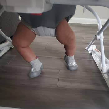 Promising review: "My 1-year-old niece was so excited when she got these for Christmas and even modeled them around the house! She’s been growing out of her shoes so fast that she can’t keep em on her feet and ends up just wearing her socks. These are great because they are both socks and shoes with good grip so no slipping and falling. They also have a variety of different colors to match with anything. The price is reasonable but still made of good quality that can be easily washed and dried if soiled. Very stylish, for day to day use for any child to wear." —VWall