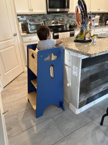 Promising review: "This kitchen helper tower is a lifesaver! 🙌 My toddler can safely stand next to me while I cook or wash fruits. It’s super sturdy, doesn’t wobble, and the adjustable height makes it perfect as she grows. The wood looks beautiful in our kitchen, and it was easy to assemble. Totally worth it for independent little helpers!" —Manuela Madrigal