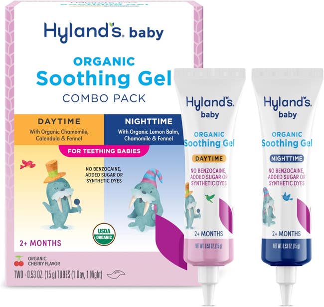 Promising review: "I bought these for my six-month-old, who was growing her bottom two teeth at the same time. She was very cranky and we could tell it was really bothering her. I really like the fact that you have a daytime and night time one. All of the ingredients are organic and it says they’re cherry flavor. My baby doesn’t seem to have an issue with the flavor and often times opens her mouth when I prepare the gel on my finger. We can tell a difference between her crankiness after applying. So I believe it takes away her pain or at least helps." —Alysha Reinersmann