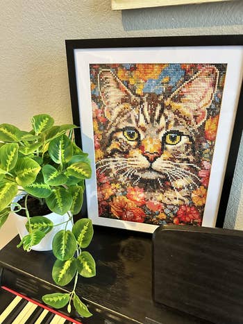 Promising review: "Came with all the gems 💎 and supplies needed to get this done! I only used one of the red sticky pads and hand-placed them one by one. It took me about a month and a half to complete because I did it on and off when I had free time. It is truly therapeutic and good for mental health, and super satisfying when completed! 👍" —Allyssa Allison
