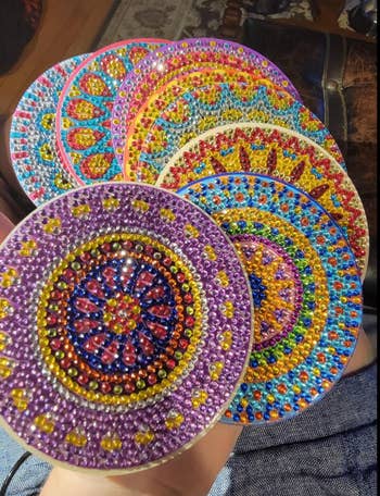 Promising review: "The designs and colors are the same as shown on Amazon. Finished coasters sparkle, and the vibrant colors create eight very cute cats. There were plenty of beads to complete the project, and adhesion was excellent. Letters and numbers were sharp and easy to follow. I am delighted with these coasters." —PackLeaderJ