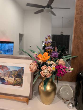 Promising review: "This is a great gift for anyone who loves flowers. They are as sturdy as they get since they're Legos, and although they do take a while to build, it's a very fulfilling process. Love it and would set aside as something to gift to several people at any point. They look beautiful!!" —Gaby