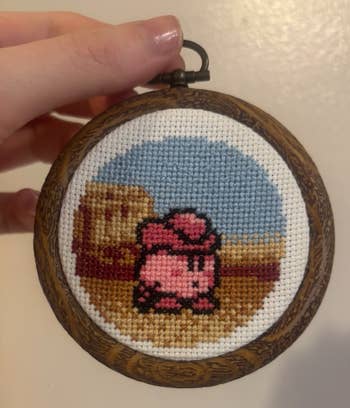 When I got Bek O'Connell in a draw for BuzzFeed Shopping's Secret Santa in 2024, I went on the hunt for a cute Etsy cross-stitch pattern and found this one! It was a super clear PDF I was able to instantly downloaded and this might be my cutest cross-stitch creation to date!!!