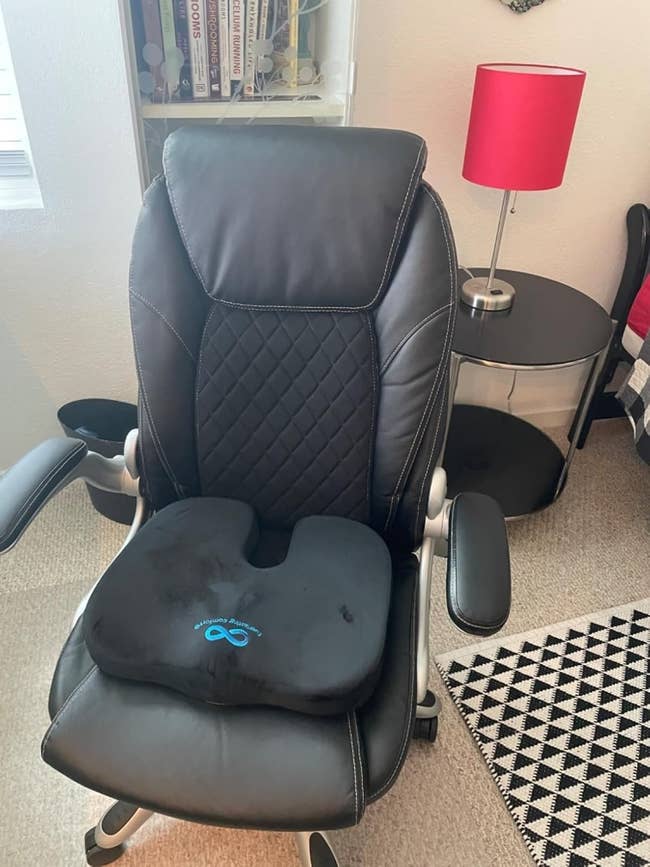 We hope you love our recommendations! While every product is independently chosen by our editors, BuzzFeed and our publishing partners may collect a share of sales or other compensation from the links on this page. You can read more about how our affiliate partnerships work in our Editorial Standards & Ethics Guide. But the past is the past. Get these for your future! Promising review: "Easy install and a much cleaner look than a power strip or extension cord. The added USB plugs and the light are functional extra bonuses! I will be buying more of these for every room in the house!" —DAN Get it from Amazon for $12.99+ (available in three colors and in two other sizes). Read more about how chair cushions can help at Cleveland Clinic. Promising review: "I don't normally write reviews, but on this occasion, I'm willing to make an exception. I sit behind a computer almost all day long. I make an effort to get up and walk around at least once per hour. Despite that effort, I was suffering from tailbone pain for over a month. It was progressively getting worse. This cushion brought relief literally on the very first day. My pain has subsided almost entirely. I've been thoroughly impressed with my purchase." —Pdrmoon Get it from Amazon for $47.99+ (available in two sizes and four colors). Promising review: "Freaking love this thing! I have to sit for like 8–10 hours a day right now in the early years of med school, and it’s been a game changer for my back! I mostly use it upside down so I can rock my feet back and forth, but I like the soft side, too, when I’m trying to sit still. Highly recommend if you have a sore tailbone at the end of a long work/study day." —Bails Get it from Amazon for $41.95+ (available in velvet or mesh and three colors). Head over to our list of the best under-desk footrests to see some other styles! Promising review: "This is one of the best footrest products that I have seen. It keeps me relaxed and comfortable in a sitting position, especially if I've been sitting for too long in cars, planes, or on my couch." —YangTingting Get it from Amazon for $16.99+ (available in three colors). Read more about migraine treatments at Mayo Clinic. And read more about aromatherapy and stress and tension at Johns Hopkins. Promising review: "After reading an article on BuzzFeed that touted this product, I bought one for my boyfriend, who suffers from awful, frequent headaches. It WORKS. Not only does he swear by them, but he has also purchased them for his mom and several friends. FANTASTIC." —Your friend Sarah Read my coworker's Migrastil Migraine Stick review for more deets! Promising review: "Never thought something analog would be SO useful in my daily routine. I work from home and am constantly project managing multiple complex strategic projects. Having pertinent information directly in front of me and top of mind has done incredible things for my productivity. Never would have imagined it would make such a difference. For a nominal investment, I highly recommend it if you have trouble keeping up with things." —Captainflapjax Get it from Amazon for $27.99+ (available in five designs). Promising review: "I have had this ball chair for a few years. I purchased it after I was experiencing pain in my lower back, tailbone, and butt from sitting too long at my desk. The ball chair fixed these issues for me. I purchased one for my office, my home office, and any employee of mine who wanted one. It is super easy to roll around (much easier to navigate than just sitting on a balance ball, which is where I started). It’s worth the price, and I have had no issues. Some people think the chair is funky, but I have no regrets!" —Timothy Brown Get it from Amazon for $67.73+ (available in seven colors). Promising review: "I am obsessed. I paired this with a treadmill platform so I can work, do school, and exercise! Such a good product." —Felicity Get it from Amazon for $104.48+ (available in 5 sizes and 10 colors). ErgoDriven is a small biz making products to help make getting through the work day a little less painful. Promising review: "I recently invested in a standing desk to help reduce my sedentary habits, shed some extra weight, and get back into shape. I experience foot pain quite often, including plantar fasciitis, so I decided to try this mat, hoping it would help me stretch and exercise my feet. This mat has far exceeded my expectations. "Standing barefoot on this mat has been a revelation. The various surfaces allow me to massage my feet all day long. The textured areas and different angles are perfect for stretching my toes forward and backward, giving me a great range of motion that I didn’t have before. My feet, which usually ache after long days, actually feel less pain now, despite standing all day. "Since I started using this, my productivity has skyrocketed. Standing helps me stay far more awake and engaged, and this mat allows me to stand much longer without discomfort. It’s been a game-changer for maintaining focus and energy during my long 12-hour shifts." —WHy gEoff Get it from Amazon for $109+ (available in three colors). You can set the timer for 5-, 10-, 15-, 20-, and 30-minute blocks by rotating it to the time you want. Then it will start the countdown. There are also four volume options in case you don't want to disrupt any other people in your home. Promising review: "I love this timer to keep me on task while working from home! For the price, I was honestly impressed with the quality. My only suggestion would be an option for the display to stay backlit. You can press the snooze button on top to light the display for about five seconds, but that’s not super convenient if you have it rotated in timer mode, plus you have to actively press the button rather than just glancing at how much time is left. Honestly, this is a very small quibble that I could fix simply by not working in a dimly lit room, but it’s really the only critique 