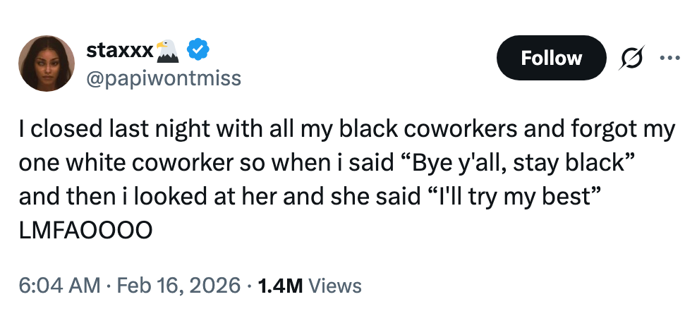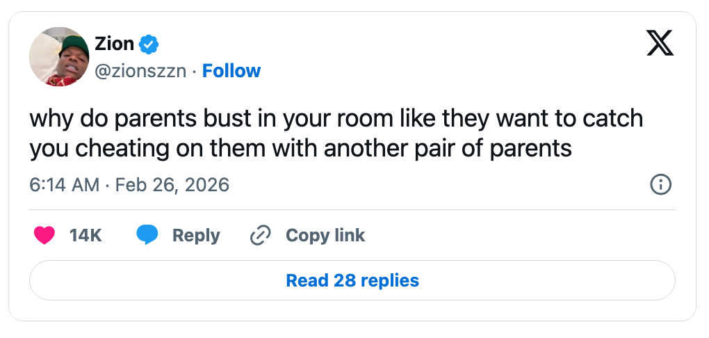 "why do parents bust in your room like they want to catch you cheating on them with another pair of parents?" Hi, I’m Michaela Bramwell, and I'm a Junior Staff Writer here at BuzzFeed, covering everything trending news, from your latest viral TikTok to the chaos of today's politics. Editor's Note: While we can't endorse what X has become, we can bring you the worthwhile moments that still exist there, curated and free of the surrounding chaos. me sliding out of black history month and into women's history month because my intersection crosses a multi-lane highway... pic.twitter.com/2XFF8W0xun Melanin March tomorrow https://t.co/dg8DrjgdZ8 pic.twitter.com/qRk9sb477K I'm Actually In Physical Pain From Laughing At These 17 Black Twitter Tweets That Completely Made This Week