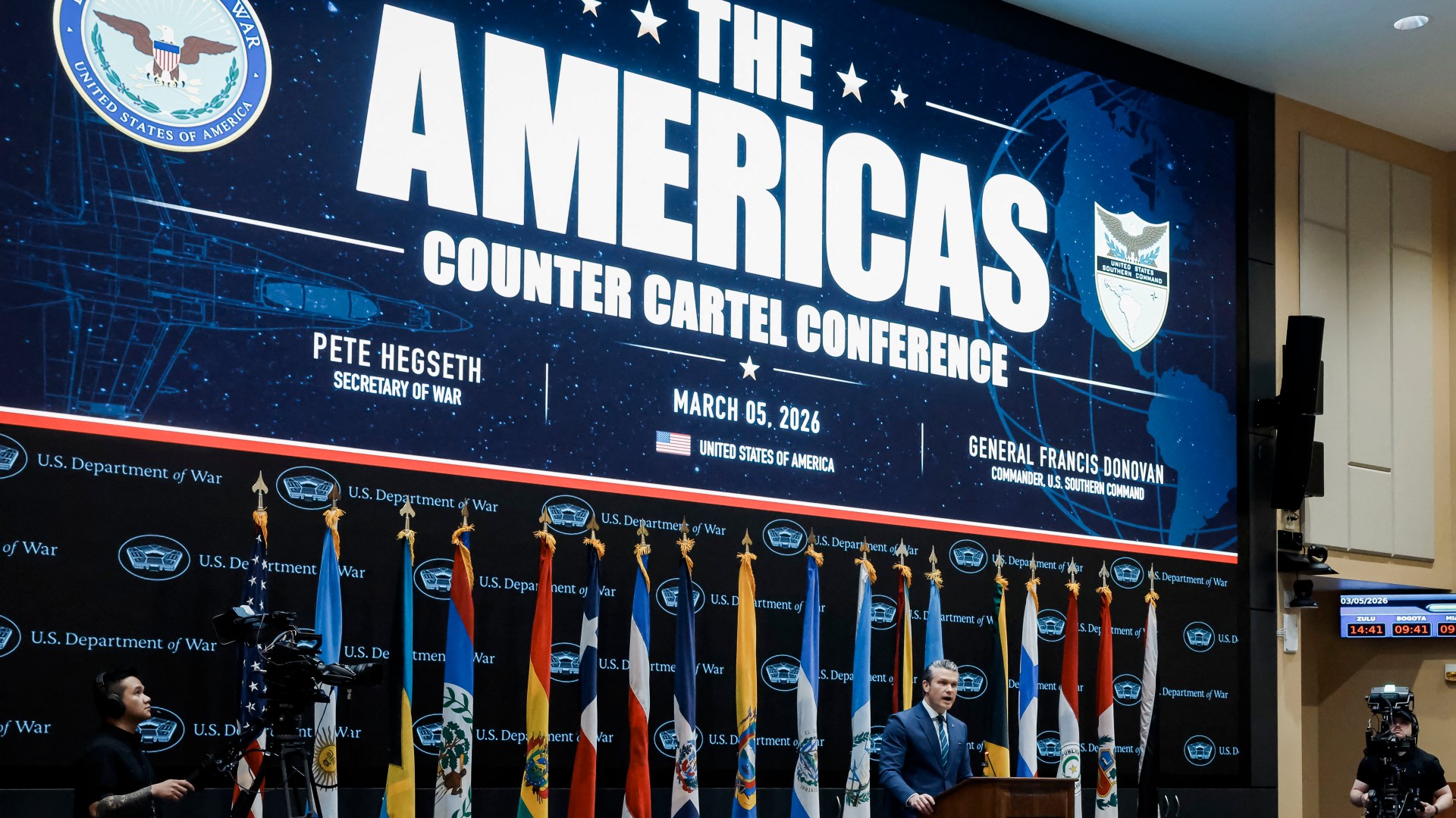 At the inaugural ‘Americas Counter Cartel Conference’, Trump officials pledged to continue military operations against Latin American gangs. Share Save The United States-Israeli war with Iran continues to rage, as Washington pledges to send more troops and military assets to the Middle East and Tehran widens its retaliatory strikes across the region. But on Thursday, top officials under US President Donald Trump shifted focus to another military front: Latin America. Since taking office for a second term, Trump has indicated he plans to exert US dominance over the entire Western Hemisphere. His push for control has coincided with military operations against alleged criminal networks across the region. At Thursday’s inaugural “Americas Counter Cartel Conference”, speakers such as White House security adviser Stephen Miller assured reporters that Latin America would remain a top military priority for the US, regardless of events in the Middle East. “We are not going to cede an inch of territory in this hemisphere to our enemies or adversaries,” Miller said, adding the US was “using hard power, military power, lethal force, to protect and defend the American homeland”. Miller further maintained there is no “criminal justice solution” to drug cartels, which he likened to armed groups like al-Qaeda and ISIL (ISIS). Organised crime, he concluded, “can only be defeated with military power”. Since Trump took office last year, his administration has applied what experts describe as a “global war on terror” approach to Latin America, including by labelling drug cartels “foreign terrorist organisations”. Figures like Miller, a key architect behind Trump’s hardline immigration policies, have championed the president’s militaristic approach, even as critics warn it raises human rights and legal concerns. Last September, for instance, the administration began striking alleged drug-smuggling boats in the Caribbean and eastern Pacific Ocean, in what rights groups have decried as extrajudicial killings. And in early January, the US launched an extraordinary operation to abduct Venezuelan leader Nicolas Maduro. It has since pursued a pressure campaign against Cuba designed to weaken its communist government. Just this week, on Wednesday, the Pentagon announced it had launched joint operations with Ecuador’s military “against Designated Terrorist Organizations” in the South American country. The announcement indicated a new front for US military actions in the region, which officials have said could include land operations. But the broadening scope of Trump’s military involvement in Latin America, combined with the nascent war with Iran, has raised questions about the US’s ability to sustain such intense military activity. The “Americas Counter Cartel Conference” came as Latin American leaders arrived in South Florida to attend a regional summit hosted by Trump at his Mar-a-Lago estate. Attendees included officials from the Trump-allied conservative governments in Argentina, Honduras and the Dominican Republic. But despite support from several regional governments, Secretary of Defence Pete Hegseth nevertheless told the audience that the US was “prepared to take on” Latin America’s cartels and “go on the offence alone, if necessary”. “However, it is our preference — and it is the goal of this conference — that, in the interest of this neighbourhood, we all do it together,” Hegseth added. The secretary also praised Trump’s take on the 1823 Monroe Doctrine, which sought to establish a US sphere of influence, separate from Europe, in the Western Hemisphere. Administration officials have dubbed Trump’s parallel approach the “Donroe doctrine”. Hegseth framed the administration’s attacks on alleged drug-smuggling boats as a keystone of Trump’s effort to maintain regional influence. The US military has carried out at least 44 aerial strikes on vessels in the Caribbean Sea and eastern Pacific Ocean, resulting in an estimated 150 known deaths. The identities of the victims have not been released, with several family members saying fishermen and informal workers were among those targeted. The Pentagon chief said the approach was meant to “establish deterrence”. “If the consequence was simply to be arrested and then released, well, that’s a consequence they’d already priced in a long time ago,” Hegseth said. He then pointed to a “few weeks” in February in which there were no strikes on alleged drug boats. The pause in attacks, he said, was evidence of the strategy’s success. But that break notably came as the US surged assets to the Middle East. Neither Hegseth nor Miller specifically referred to the war with Iran, but the pair touched on themes that have been present in the administration’s messaging on the war. Trump, for example, said Iran’s government “waged war against civilisation itself”. There have been reports, meanwhile, that US military officials have referenced the biblical “end times” as a religious underpinning for the war. Those remarks have reflected what critics consider Trump’s embrace of Christian nationalism and his view of the Americas as a European-derived “civilisation” threatened by outside forces. At Thursday’s conference, Miller himself referenced violence in European history as justification for the modern-day military actions in Latin America. There were periods in European history throughout the 18th and 19th centuries during which “ruthless means were used to get rid of the people who were raping and murdering and defying established systems of order and justice,” Miller said. He also echoed Trump’s allegation that Europe was facing “civilisational erasure” as a result of left-wing leadership and immigration. “The reason why many Western countries are struggling today is they’ve forgotten the eternal truth and wisdoms they once followed,” Miller said. He