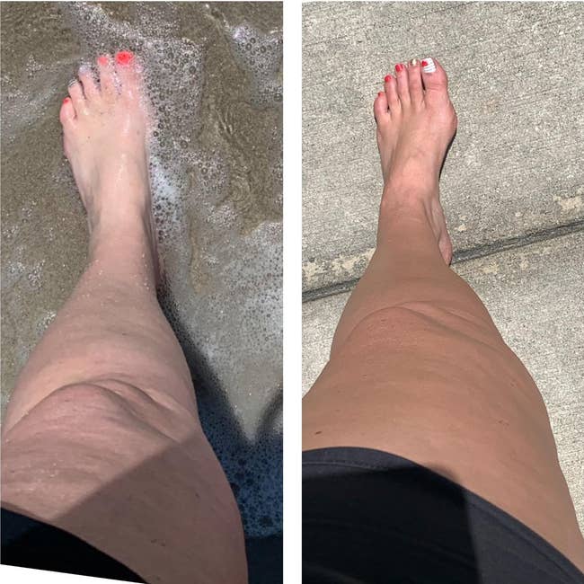 "Who doesn’t love a good tan? I used this brand before and got good results. This goes on well. No streaking if you use a hand mitt applicator. Tan sets pretty quickly and I didn’t notice any transfer on my clothes. I also use this for contour on my face and it works well." —Tabitha Sharp