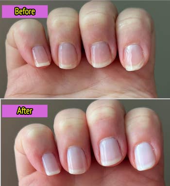 Promising reviews: "Highly impressed and satisfied with purchase. I've been a nail biter my entire life. I recently stopped biting a little over three months ago, and while I've been pleased overall with the growth, I've found that my natural nails have many imperfections. For instance, I have splinter hemorrhages, as well as white horizontal lines (aka Beau's lines) on every single nail on all 10 fingers, and the tips are transparent. But this polish literally disguises all of that. I'm so so grateful to have found it." —Kourtnee amos