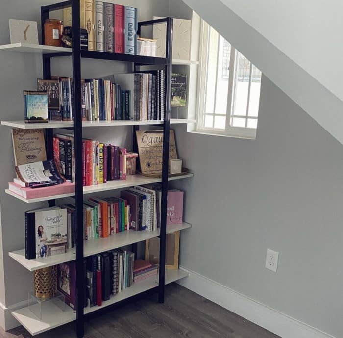 Promising review: "I was looking around for a bookshelf for my under-the-stairs reading nook and I came across this one. It was so easy to assemble, it took no time at all. I love the look of it, and it's very sturdy to hold all my books and decorations." —Tia
