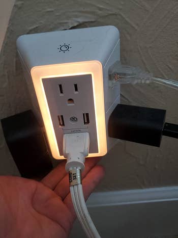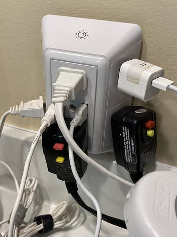 Promising review: "I work from home in a small apartment, and this really made my setup work the way I want it to. I need to use all six plugs, plus I like to keep my phone and Mi-Fi charging while working too. This was the perfect thing for me to get everything plugged in and essentially retrofitted into a built-in apartment wall desk setup that was intended for the large desktop towers of the late '90s. I’m ordering a second one in hopes it transforms another part of my weird floor plan. Bonus: The USB ports seem to fast-charge my iPhone XS Max. I can go from dead to fully charged in about 90 minutes." —Moose