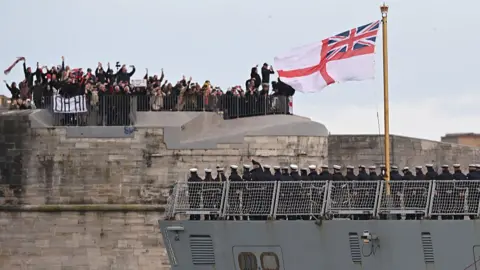 HMS Dragon has begun its journey to the eastern Mediterranean to join the UK's defensive operations in the region. The Type 45 destroyer left its dock in Portsmouth on Tuesday afternoon, having only recently come out of maintenance. It will be the UK's first and only warship in the region when it arrives in about a week. It comes hours after the government placed a naval support ship, the RFA Lyme Bay, on "heightened readiness" to be sent to support British nationals in the Middle East if needed. HMS Dragon's primary role will be protecting RAF Akrotiri, which was hit with an Iranian-made drone earlier this month. The strike was said to have caused "minimal damage" to a hangar on the base. Defence Secretary John Healey told the House of Commons on Monday that the drone had come from Lebanon or Iraq. Three US bombers also took off from RAF Fairford in Gloucestershire on Tuesday. Prime Minister Sir Keir Starmer earlier approved "defensive" US action against Iranian missile sites from UK bases. HMS Dragon is armed with Sea Viper missiles and will be assisted by Wildcat helicopters from the 815 Naval Air Squadron equipped with Martlet missiles capable of taking out aerial drones, the Royal Navy said. "My ship's company have worked tirelessly to ensure we are ready for our mission to the eastern Mediterranean," the ship's commanding officer Cdr Iain Giffin said in a statement. Healey praised the efforts of the Royal Navy in preparing HMS Dragon for deployment, saying: "What is normally six weeks of work was completed in just six days - a remarkable effort delivered round the clock. The very best of Britain in action." Meanwhile, the RFA Lyme Bay has been told to be prepared to deploy "as part of prudent planning... should she be needed to assist in maritime tasks in the eastern Mediterranean", the Ministry of Defence has said. The auxiliary vessel is equipped with an aviation platform and has medical facilities, meaning she can play a role in evacuations and medical treatment. The MoD would not be drawn on what the primary purpose of the RFA Lyme Bay would be were it to be deployed, but its facilities as a support ship make it well-suited for humanitarian and disaster relief missions. The vessel is currently in Gibraltar and has not yet been tasked. The MoD stressed the change in status was precautionary. The RFA Lyme Bay is a Bay Class landing ship, not a warship, and its primary function is to deliver troops, vehicles, stores and ammunition in the case of amphibious assaults. The Sun reported that the RAF is due to deliver military medics and a mobile field hospital that can operate aboard the ship. HMS Prince of Wales - one of the UK's two aircraft carriers - has also been placed on heightened readiness, with defence sources telling the BBC that its crew had been told to be ready to set sail in five days. However, this was not explicitly for a potential deployment to the eastern Mediterranean and an MoD spokesperson said on Tuesday that the ship's scheduled deployment to the north Atlantic had not changed. Elsewhere, the MoD said three Wildcat helicopters with anti-drone capabilities had arrived in Cyprus this week, alongside a Merlin helicopter. Healey told MPs that RAF Typhoon fighter jets had taken out two Iranian drones, one over Jordan and a second heading towards Bahrain. F-35s were also destroying drones over Jordan, the defence secretary said, while UK jets were also conducting defensive sorties over the United Arab Emirates. Counter-drone units were defending against attacks on coalition bases in Iraq, he added. A drone heading towards coalition forces was taken out overnight, the MoD said on Tuesday. The UK government has not joined the US and Israel in offensive operations against Iran, but has offered the US use of UK airbases to conduct what it calls defensive strikes against Iranian missiles and launchpads. It has stressed that it has been positioning military assets in the region since January and has sent more since the conflict began. The UK government has faced accusations of not responding to the crisis in the Middle East quickly enough. Conservative leader Kemi Badenoch said: "We have put bases in other people's countries, and those countries are saying we're not doing enough to help them. I think that's absolutely shocking." A number of Gulf nations housing US facilities have been targeted with Iranian missiles and drones during the war, which began on 28 February. Bahrain and the UAE are among Gulf nations that have been subject to strikes by Iranian drones and missiles, including some that have hit civilian targets such as hotels and airports. With airspace restrictions still in place across the region, commercial flights in and out of the region are slowly resuming after many airlines cancelled services. However, British Airways said on Tuesday that it was cancelling its flights to Amman, Bahrain, Doha, Dubai and Tel Aviv up to and including 28 March. The UK government has arranged evacuation flights for British citizens in the region. The first flight landed at Stansted on Friday. Around 45,000 UK citizens had been evacuated so far. The defence secretary also told MPs that the warship HMS Dragon would set sail for the Mediterranean in the next couple of days. The Cypriot government has criticised how the UK has handled information sharing after drone attacks. The Β£1bn deal for 23 aircraft will help to secure the future of the site in Yeovil. HMS Dragon is being loaded with ammunition in Portsmouth having just recently come out of maintenance. The explosives team in charge of clearing the area say more than 30 staff took part in operations.