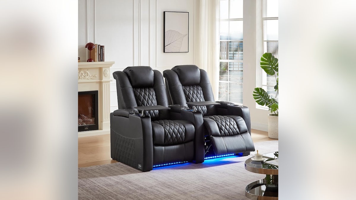 Bring movie-theater comfort home with these reclining leather seats. They comes with a tray table, charging ports and ambient lighting controlled with the push of a button.