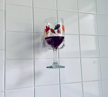 Promising review: "I bought this as a gag gift, but she loves it! I gave it with a plastic wineglass because putting a glass in a bathtub is just a bad idea. The suction cup is way stronger than you'd think, it's easy to get the glass in and out, and voila, your drink is right there." —Paula F