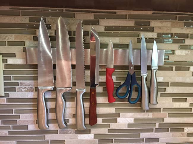We hope you love our recommendations! While every product is independently chosen by our editors, BuzzFeed and our publishing partners may collect a share of sales or other compensation from the links on this page. You can read more about how our affiliate partnerships work in our Editorial Standards & Ethics Guide. Your space may be limited, but your organization options are endless. Promising review: "Bought this shelving to hold all my spices and have their labels visible. Holds everything securely, and the magnetic strength is exceptional. A very good buy." —evrhandyman Get a set of two from Amazon for $21.99 (available in several colors and in sets of four or six). Reviewers also use this on their washing machines, dryers, and metal doors. Promising review: "I don’t know if it’s just me, but I don’t like a lot of stuff on my countertops. This is just what I was looking for. It’s compact and a space saver. The magnet sticks really well. It doesn’t move when I tear off paper towels." —Latasha Jackson Get it from Amazon for $16.99 (available in black or white). You can also add a magnetic shelf to the top of your stove and store the spice jars there! Promising review: "Finally!!! We searched for a long time for spice jars that would hold a nice amount of spices. These are perfect! With a pour or sprinkle option, window to see the spice level, strong magnet, and space-saving square shape! We planned to just put our 'popular' spices in them, but we love them so much we are buying another set so we can have all our spices organized!!" —JT Get it from Amazon for $14.99+ (available in three pack sizes). This magnetic bar comes with mounting hardware and instructions to hang it up, and it is also compatible with Velcro or any kind of mounting tape. Btw, it's corrosion-, heat, and fire resistant, so you can mount it near the stove! Promising review: "I want to order another one!!! I wish I had thought to purchase one of these sooner. The magnet is strong and holds plenty of my everyday knives. I decided to put it on the side of my fridge, and it holds perfectly when you remove the back and stick directly on. I didn't need anything extra to hold it in place either. Now, I have more counter space." —RayJoni07 Get it from Amazon for $15.29 (available in six sizes and two styles). It comes with cup hooks for mounting, but you could always use Command hooks if that's your preference. macraYAYmacrame is an Indianapolis, Indiana-based shop that makes a variety of cool macrame accessories. Promising review: "Super quality, shipping was very quick. The piece is such a space saver and looks absolutely adorable. Functional and cute!" —Megan Johnson Get it from macraYAYmacrame on Etsy for $35. Promising review: "I have a ridiculously small bathroom and a super small vanity. After too many instances of my dryer and straightener falling to the floor, I went searching for an option to get them off the non-existent counter and onto the towel holder next to my sink. This product has done the trick — it helps me keep my counter space organized and provides me with a great, heat-resistant holder to place them in while I'm working through my hair. Highly recommend!" —Amazon Customer Get it from Amazon for $24.99 (available in three colors). Promising review: "These come with their hangers and will add considerable storage. I put one on the inside of our pantry door and the second on the back of the door going from the laundry room to the garage. I initially was interested in getting one for the pantry, but the second was a nice bonus, and it makes a great place to hold cleaning supplies. Well-made, excellent price." —Kimberlee This one will keep up to 48 pieces neatly arranged! And now, any time a guest says they need a fork, you won't have to jump up and say, "I'll get it!" while sprinting to your drawers to protect them from the horror. Promising review: "I thought this would be handy and help with space management in a small apartment. It turned out to be absolutely perfect. It keeps the silverware clean and stores a lot in a very small space. I love it. I got two because I inherited my grandmother's silverware, so there are two types of forks and two types of spoons, and I wanted things separate and organized. Two organizers fit side-by-side in a standard apartment drawer. After getting these, I picked up the knife organizer, and it’s just as handy and useful." —Magpie Get it from Amazon for $13.99 (available in three sizes/styles). The necessary mounting hardware is included. Promising review: "Exactly what I was looking for. Strong and sturdy, compact for my small kitchen. Attached easily to the back of my pantry door. Very happy customer here." —Paul Get a set of two from Wayfair for $41.99 (originally $54.99; available in two sizes). It comes with two wide bins, two narrow bins, one can dispenser that can hold 10 standard 12-ounce cans or juice boxes, and one egg bin with a stackable lid that can hold 14 eggs. Promising review: "It's nice to be able to find things in the refrigerator and be able to pull out the whole tray container to see what's in the back of the fridge. I don't know if this happens to you, but I find my way to the back every so often, and come to find out a jar in the back expired a year ago. Now I can see everything and use it." —BookBroke Get a six-piece set from Amazon for $36.99 (also available as a set of eight). Promising review: "This space saver K-Cup is wonderful! It is attractive and keeps my counter clutter-free. It is lightweight but very sturdy. I would highly recommend this for anyone wanting to gain valuable counter space." —christine h Fused Line is a Seattle-based small business that specializes in KitchenAid and coffee accessories. Promising review: "Such a nifty, lovely space-saving attachment! Got this for my sister, and she loves the aesthetic and how easy and practical it is to use." —GoldenTckt Get it from Fused Line on Etsy 