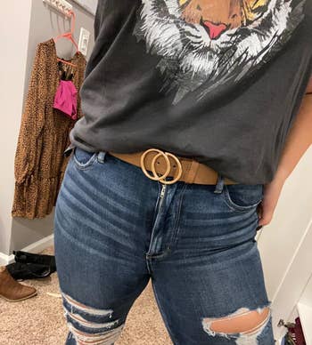 Promising review: "This is my favorite belt! It's perfect with jeans, and I get so many compliments. I love that the double ring is sort of designer-inspired but not a complete knockoff of the Gucci belt. I highly recommend! I am typically a medium, and the medium was perfect." —Everyday Teacher Style