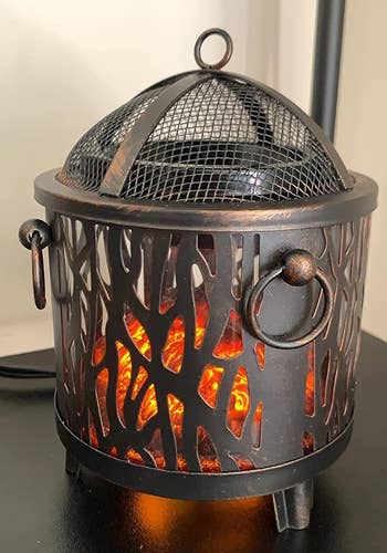 Promising review: "This warmer is beautiful! It melts the wax evenly and really distributes the scent well in a room. I keep this on my nightstand next to my bed. The glow of the artificial fire is a nice touch. I also like that it has a wire mesh cover. It keeps my dog from sticking his nose in the melted wax. 10/10, would recommend!" —S. Lane