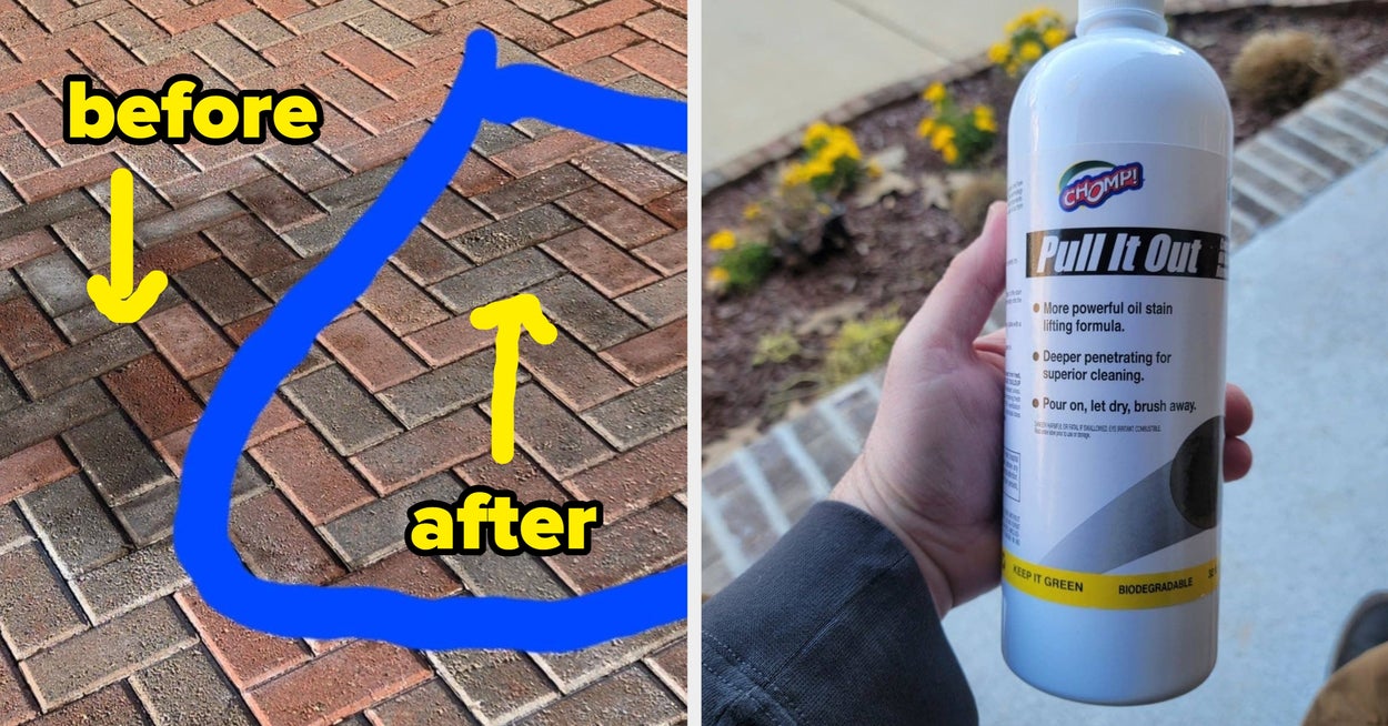 Promising review: "We had a 2005 truck parked on our paver driveway for years. The area in the photo was thick with oil leak residue. I tried several products that didn't make any difference. But with the "Pull It Out" product, the oil is gone! You can see the stark difference in the photo, with the area that was treated and the area that was not. This goes on as a liquid; it absorbs the oil from the bricks as it dries. Then I lightly scrub and hose it off, and voila! Gone! Even better, it's biodegradable!! I rarely post reviews for a product, but this product earned it. This is the best I have seen for taking leaked oil out of a driveway." —Robocop