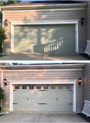 Promising review: "I’ve been wanting to upgrade our garage door for a long time, and now I have no idea why I waited! The magnets are super strong. Purchased two sets but only used one set of 'handles,' I wasn’t a fan of how close I had to place each set next to each other with the narrow spacing on the door itself. Paired with the magnetic 'windows,' it looks like a brand-new door!" —MrsPirate
