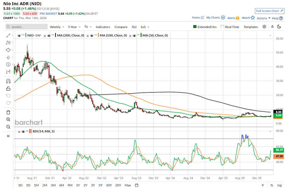 Nio (NIO) stock has gained over 21% over the last five days and is up 13.5% for the year. The price action might not look astonishing in a silo, but it comes at a time when U.S. stocks, including electric vehicle (EV) names, have slumped amid the broader-market meltdown. In my previous article, I noted that NIO’s risk-reward was looking attractive for 2026. With the stock up significantly from those levels, let’s explore whether it can continue its uptrend this year.