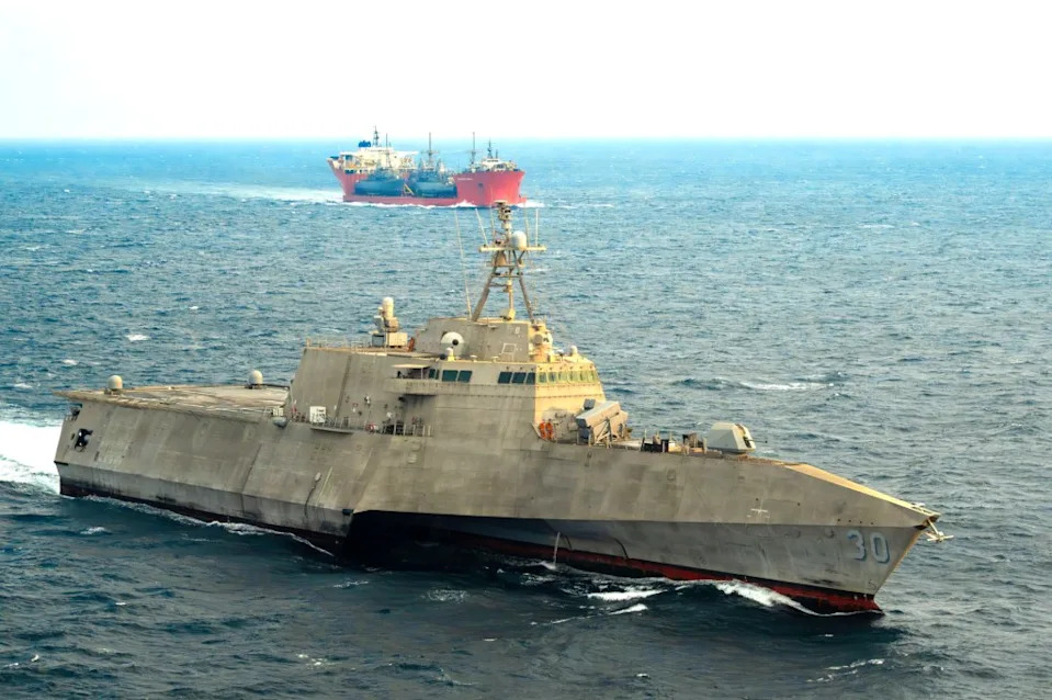 The U.S. Navy Independence class Littoral Combat Ships (LCS) USS Tulsa and USS Santa Barbara, which are configured for minesweeping duties, have appeared in port in Malaysia. Both of these ships were last known to be forward-deployed in the Middle East, having arrived in Bahrain in the past year or so to take the place of a group of now-decommissioned Avenger class mine hunters. Now, as Iranian attacks on commercial ships have caused a virtual halt to maritime traffic through the highly strategic Strait of Hormuz, these ships have emerged thousands of miles away. The extent to which Iran has seeded naval mines in the Strait already is unclear, but this remains a huge threat to the future security of the waterway and will have to be taken into account in any future effort to reopen this critical waterway. A spotter in Malaysia posted pictures of the USS Tulsa and USS Santa Barbara, which are said to have been taken today at the North Butterworth Container Terminal (NBCT) in the Port of Penang. Mike Yeo, an Australia-based defense and aviation reporter, was among the first to call attention to the particular significance of the images. TWZ has reached out for more information. Interesting. The Littoral Combat Ships USS Tulsa and Santa Barbara, which were assigned rotationally to the Middle East and were supposed to be the US Navy’s mine countermeasures platforms in that region, are now in Penang, Malaysia h/t @limzeruihttps://t.co/Fe0r7VizQm — Mike Yeo 杨启铭 (@TheBaseLeg) March 15, 2026 15 Mar – Two US Navy Littoral Combat Ships (LCS) that were assigned to mine-countermeasure (MSM) missions in the Persian Gulf are currently docked at Butterworth in Malaysia.Butterworth, Penang15th March 2026SC – sherwyndkessier https://t.co/FZN6qH1aSA pic.twitter.com/2kRnHiSeVk — Justine (@polietzz) March 15, 2026 USS Tulsa and USS Santa Barbara are among a select number of Independence class LCSs fitted with a mine countermeasures mission package, or “module.” In its current form, the package includes towed mine-hunting sonar for the ships, Common Unmanned Surface Vehicles (CUSV) with mine-sweeping gear, and mine detection and neutralization systems carried by embarked MH-60 Sea Hawk helicopters. We will come back to this configuration later on. When it comes to why the ships are now in Malaysia, TWZ also reached out to U.S. Central Command (CENTCOM), which directed us to the U.S. Navy’s Fifth Fleet. We were then directed by Fifth Fleet back to CENTCOM. CENTCOM is the top U.S. military command for operations in the Middle East. Fifth Fleet is the Navy’s numbered fleet in the Middle East, with its commander dual-hatted as head of Naval Forces Central Command (NAVCENT). Fifth Fleet and NAVCENT are headquartered in Manama, Bahrain, in the Persian Gulf. We have reached out to the U.S. Navy and U.S. Indo-Pacific Command (INDOPACOM), as well. Pictures available through the U.S. military’s Defense Visual Information Distribution Service (DVIDS) show USS Tulsa was in port in Bahrain at least as of February 9. Separate images also show USS Santa Barbara operating in the Persian Gulf on January 30. The current disposition of a third Independence class LCS, the USS Canberra, which had also been forward-deployed in the Middle East at least as of January, is unknown. Whether any other mine countermeasures ships may now be headed to the Middle East is also not known. A review of satellite imagery in Planet Labs’ commercial archive shows no evidence of any U.S. warships being in port in Manama since February 23. The United States and Israel launched their joint operation against Iran on February 28. Moving U.S. warships out of port in Bahrain ahead of the current conflict was a prudent security measure. The Gulf state is well within range of Iranian missiles and long-range kamikaze drones, and U.S. military facilities in Manama did subsequently come under attack. The U.S. military’s own strikes on Iranian naval vessels in port have underscored the vulnerability of ships sitting pierside. Why the decision was made to then send the USS Tulsa and USS Santa Barbara thousands of miles to the east is unknown. A host of factors may have come into play, including the availability of suitable friendly ports and diplomatic considerations. Regardless, at least two-thirds of the warships intended to be available for tasking for mine countermeasures missions in the Middle East are presently in a completely different part of the world. As noted, USS Tulsa, USS Santa Barbara, and USS Canberra, were forward-deployed to the region in the first place explicitly to fill gaps left by the decommissioning of four Avenger class mine hunters last year. The former USS Devastator, USS Dextrous, USS Gladiator, and USS Sentry left the region for good aboard a heavy lift ship in January. There are only four Avenger class ships left in active Navy service, all of which are forward-deployed in Japan, and are also slated to be decommissioned in the coming years. How many of the Navy’s Independence class LCSs, in total, have been configured for the mine-clearing mission to date is unknown. In addition to USS Tulsa, USS Santa Barbara, and the USS Canberra, the USS Kansas City was at least being fitted out with this mission module as of last year. The Independence class LCS is a far more advanced ship than the Avenger class mine hunter, and does offer new standoff mine countermeasures capabilities, including aforementioned CUSV drone boats and helicopter-borne systems. Still, questions continue to be raised about whether metal-hulled LCSs with mine countermeasures packages are adequate replacements for ships purpose-built for this mission. As TWZ previously wrote back in January: The [Avenger class] ships themselves have fiberglass-coated wooden hulls to reduce their own vulnerability, particularly to mines that detect targets by their magnetic signature. The Navy has long intended to replace the Avenger class ships with LCS