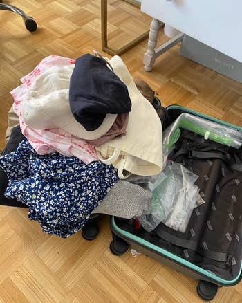 We hope you love our recommendations! While every product is independently chosen by our editors, BuzzFeed and our publishing partners may collect a share of sales or other compensation from the links on this page. You can read more about how our affiliate partnerships work in our Editorial Standards & Ethics Guide. You’ll be very glad to have these Tide sink packets when you’re a week into sightseeing, fresh out of clean underwear, and still have five more days. Promising review: "Discreet yet spacious. I purchased this for a recent trip. I was able to fit my phone, passport, credit cards, and cash in it easily, and it wasn’t bulky or obvious under my clothing. It was comfortable to wear for extended periods of time." —KailensMom Get it from Amazon for $12.99+ (available in 13 styles and two sizes). BuzzFeed Shopping writer Emma Lord loves these: "HELLO, I AM OBSESSED WITH THESE. Despite all the rave reviews, I was definitely skeptical of space-saving bags that didn't require a vacuum, and even as they were actively squishing my clothes into oblivion, I still couldn't quite believe it. I had easily two suitcases worth of clothes I wanted to pack for a three-week trip to London, and I managed to neatly pack the entirety of my wardrobe in one roller carry-on bag. Truly, all I had to do was put my clothes in the bag, push them to the bottom, and then sit on it to get the air out before sealing it up. I had tons of extra bags and made a habit of taking them with me in case other people joining me on trips need them to be able to pack souvenirs on the way home. I'm never taking a long trip without these again — these are worth every damn penny." Get a set of eight from Amazon for $10.28. Perilogics is a small business creating hyper-functional tool holsters and bags for carrying your stuff on the go. Promising review: "I bought this nifty gadget about six months ago for a multi-leg, ultra long-haul trip and it more than held up the entire duration. I was able to finagle it to fit the tray tables on different planes and like others, I find the height just nice when clamped onto a stowed tray table. It also works on my roller carry-on handle during layovers." —Earendil Get it from Amazon for $13.99+ (available in seven colors and packs of two). BuzzFeed Shopping writer Emma Lord also has these: "I'm a long-ish distance runner, and these were certainly an interesting experience for my feet! You slide them on and, after a few minutes, feel a tingling, mildly burning (in a good way) sensation. It doesn't quite numb your feet, but it relaxes them. I kept them on for 30 minutes and then toweled my feet off, and the tingling sensation slowly faded over the next 30 minutes. After that, my feet felt very refreshed and relaxed at a time of day when they're usually aching from all the miles I put in. The whole thing was a mess-free, easy process, and I will definitely keep them on hand for longer run days!" BuzzFeed Shopping editor Elizabeth Lilly is a big fan of these: "Each pack comes with three packets. And, because they *are* liquid, they'll easily slide into the side of your toiletries bag. I've packed these on international trips to much success!" Promising review: "I bought these just in case. I'm the overly prepared type. And then I was sitting there in Florence eating this incredible sandwich for lunch, and it all came pouring out the bottom on to my linen pants. Olive oil, liquid from sundried tomatoes.... FUUUUUUUUDGE. Luckily we were eating in our room, so I immediately stripped my pants off, put them in the tub and dumped in two of these Tide packets. We'd packed carry-on only, so I needed these pants frequently! The Tide saved the day. They also came in handy to refresh my husband's socks after walking around in the heat all day. GET THEM. It's an easy pack and a no-brainer." —NolaForever Get nine packs from Amazon for $6.02 (also available in two other pack sizes and individually in another scent). Promising review: "I recently took a cross-country flight with my three kids. I really didn't want to worry about checked bags getting lost so maximizing our carry-ons was a priority. This backpack fit an unfathomable amount of stuff! Lots of zippers and compartments for everything from shoes to laptops/iPads, easy access compartments for cell phones and boarding passes, I fit tons of neatly folded clothes. The best part was that fully loaded it easily slid under the seat." —Kindle Customer Get it from Amazon for $28.49+ (available in four sizes and a variety of styles). Check out BuzzFeed Shopping editor Elizabeth Lilly's TikTok of the digital luggage scale in action. Promising reviews: "This scale works and was accurate on four flights. The first flight was a test at 46 pounds, and the Delta scales said it was 46 pounds. The next two flights were at 49 pounds, and both United and Delta found it to be 49 pounds. The bag on the fourth flight weighed 49, but the United scale found it to be 48 pounds. Four different airports and scales proved that this scale is a good, low-cost, must-have item for air travel." —Robert Get it from Amazon for $8.90 (available in four colors and also a two-pack). Promising review: "I've been looking for a carry-on replacement for some time. My last carry-on was from 2007, so it was super old and not very good. Now that I have my July Carry On, I couldn't be more pleased. It's so good from functionality to style. I love the laundry bag — it's great that I don't have to remember to take my own separate laundry bag with me anymore — and the charging is so useful. The wheels are silent and smooth — so much so that on the slightest decline the bag will 100% roll away from you. The bumpers are a bit scratched after some use, but it's hardy/designed to protect what's inside, and I accept that there will be some of that happening on long-haul flights. I really enjoy the personalization as well — I had my name and a little frog etched on the top —