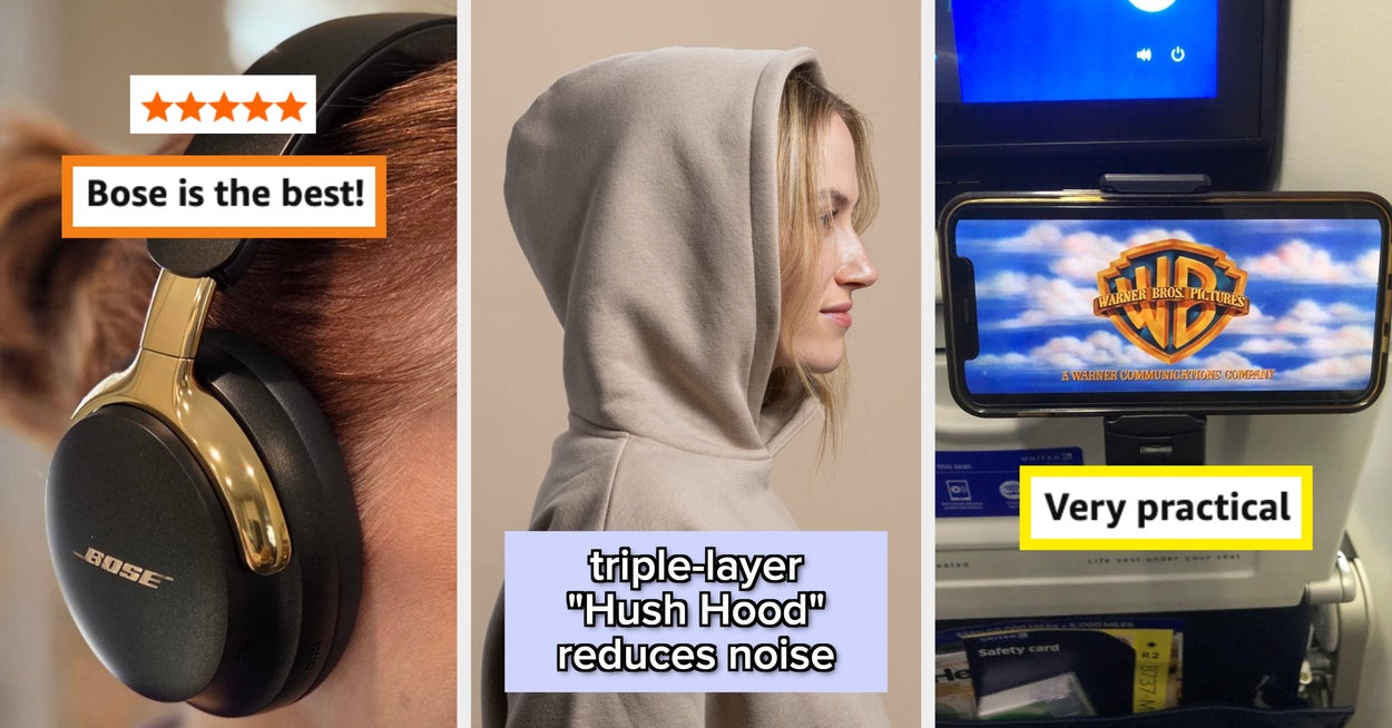We hope you love our recommendations! While every product is independently chosen by our editors, BuzzFeed and our publishing partners may collect a share of sales or other compensation from the links on this page. You can read more about how our affiliate partnerships work in our Editorial Standards & Ethics Guide. These products + repeating the mantra, "I saved hundreds of dollars sitting here," should do the trick. Limited leg room, narrow seats, lack of head support, constant noise, and next to no recline... the cons of economy go on, but for many of us, first-class just isn't in the budget. While we can't *literally* make more room for ourselves, there are some clever products out there that make the experience more tolerable. Ahead, we've got purpose-designed travel hoodies, noise-blocking over-ear headphones, hydrating skincare sets, inflatable foot rests, compression socks, anti-bobblehead pillows, and more. A Trtl travel hoodie with a slew of purposeful design details, including a zippered pocket for important documents, lower armholes so it's easier to put on and take off in tight spaces, and a triple-layered "Hush Hood" for noise reduction. That last one really comes in clutch, and helps you ensure some quality shut-eye, even if you're seated right next to the bathroom where there's a constant line of people making small talk. PS: This comes from the makers of the uber-popular Trtl travel pillow, which features a unique, scarf-like design. Get it from Trtl for $69.99 (originally $140; available in women's and men's sizes S–XXL and in two colors). A pair of Bose QuietComfort Ultra headphones with next-level noise cancellation so you can shut your eyes, turn on a podcast, and forget you're stuck in the middle seat. Of course, when meal time rolls around, you can switch from "Quiet mode" to "Aware mode" so you can hear the flight attendants asking if you want chicken or pasta. Oh, and they also have up to 30 HOURS of playtime, so if you fall asleep with something playing, you won't kill the battery. Promising review: "I was so excited to receive these bad boys! As a long-time fan of Bose, I couldn’t wait to get my hands on the Gen 2 headphones and they did not disappoint. First off, the sleek design is beautiful, and I love how easily the earpieces fold for storage. I recently wore them on two flights, and wow, I’m impressed. They were incredibly comfortable the entire time. Over-the-ear headphones usually leave my ears sore after long use, but with these, I actually fell asleep wearing them and had no discomfort at all! The noise cancelling is truly top-notch: it completely blocks out the world around you. I also appreciate the included carrying case, which makes traveling super convenient. And best of all? The USB-C cable! Those are surprisingly hard to come by these days, and honestly, it was a big selling point for me. Overall, the Bose Gen 2 headphones live up to the name and reputation. If you’re looking for comfort, quality, and great design, I highly recommend them!" —Krucifixo Get them from Amazon for $425+ (available in five colors). A seat-back organizer that slides over the tray table so you don't have to touch any icky surfaces or dig around in that communal pocket of crumbs looking for your misplaced passport. It's machine washable, so after your flight, you can toss it in the wash and then use it again! PS: The genius Airplane Pocket is a small biz! Check out a TikTok of the Airplane Pockets tray table cover in action. Here's what BuzzFeeder Emma Lord has to say: "I used this on a round-trip from NYC to Tokyo, both with connecting flights in Canada, and cannot sing its praises enough. It fit all four of the different tray tables I used it on and was so ridiculously handy for keeping track of all my littler odds and ends like AirPods, the plane's headphones, earplugs, a sleep mask, a book, gum, a scrunchie, and little snacks. The hanging end of it easily tucked into the built-in sleeve of the seat in front of me for takeoff and when other passengers needed to scoot past me in my aisle seat. Usually, I feel like a hot mess and get frustrated rooting around in the grimy sleeve for my stuff, and this was such a refreshing solution! Several flight attendants even asked where I got it to buy one for themselves!" Promising review: "Every time I whip this thing out, someone leans across the aisle, asks what it is, and then makes a note to buy one when they get home. On a long-haul flight, it's simply a must for organizing your reading materials, headphones, sanitizing wipes, etc. My favorite use for this thing is when I've fallen deep asleep along the way, only to wake up in a fog and in a rush to deplane. Instead of having to hastily dig things out of the seat back pocket, I just slip the entire thing off of the tray table, pop it in my bag, and worry about sorting things out when I get to where I'm going — safe in the knowledge that I didn't leave anything behind. Love it!" —justinglen A nifty universal phone mount so you can pass your high-altitude hours *finally* catching up on the latest season of Love is Blind. Your budget seat might not have come with its own built-in screen, but this works just as well. PS: You can also clamp it onto your suitcase to watch stuff while you wait to board. Promising review: "I bought this gadget about six months ago for a multi-leg, ultra-long-haul trip, and it more than held up the entire duration. I was able to finagle it to fit the tray tables on different planes and like others, I find the height just nice when clamped onto a stowed tray table. It also works on my roller carry-on handle during layovers. However, I find myself using it a lot outside of travel, too! Work-wise, I've clamped it onto my office desk shelving to hold my phone at eye level beside my computer. At home, I simply clamped it to a deck of cards and it turns into a versatile stand that I can place on any flat surface. Heck, I've been using it to h