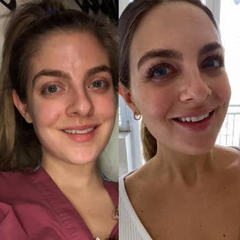 BuzzFeed writer Emma Lord loves this mascara and says: "I am not a new human to the tubing mascara game, and in fact readily spent $26 on the famous OG blend from Blinc every time it needed replacing. I didn't even love it for the length half as much as the fact that tubing mascara like this genuinely never smudges, but can I just say — regardless of price, the E.l.f. tubing mascara formula blows all the others I've tried out of the water. It gives me way more length and volume than other brands, slides on so much more easily, stays put ALL day, and never, ever smudges. My favorite part, though, is how gently and easily it comes off with soap and water. In the past, other mascara removals have felt rough on my lashes, but this comes off so fast that I'm like ??? was I even wearing mascara a minute ago?? Anyway, I hesitate even writing this review because I want to gatekeep the hell out of this before it sells out, but the world needed to know. I'm a big fan of the brown shade (which is what I'm wearing above!), but it also comes in black and soft black."