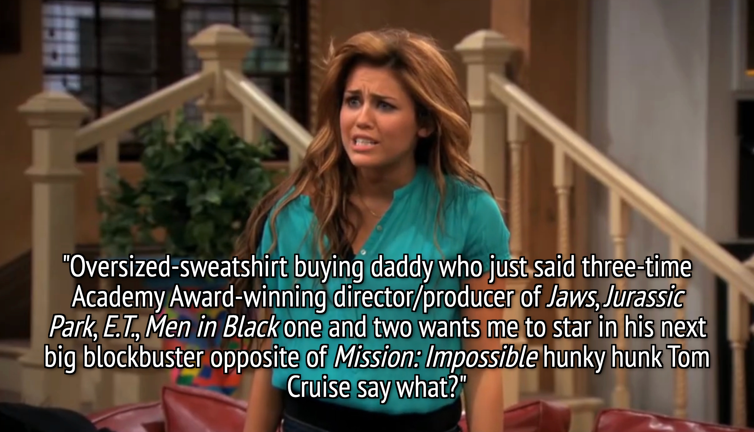 I’m the SEO Resident here at BuzzFeed, and I cover everything from trending pop culture and celebrity news to evergreen entertainment and lifestyle topics. While famously known as a recurring Hannah line, just about every character said this at least once. So much so that there are full compilations of the top "sweet niblets!" moments throughout the show. This is another line that was recurring throughout the show, but a special shoutout goes to the longest version of this phrase from "Wherever I Go" (Season 4, Episode 13): "Oversized-sweatshirt buying daddy who just said three-time Academy Award-winning director/producer of Jaws, Jurassic Park, E.T., Men in Black one and two wants me to star in his next big blockbuster opposite of Mission: Impossible hunky hunk Tom Cruise say what?" —Roxy in "On the Road Again" (Season 1, Episode 12) —Jackson Stewart and Oliver Oken in "Achy Jakey Heart: Part 1" (Season 2, Episode 9) —Miley Stewart in "Get Down, Study-udy-udy" (Season 2, Episode 4) —Miley Stewart in Hannah Montana: The Movie —Hannah Montana in "Kiss It All Goodbye" (Season 4, Episode 11) —Hannah Montana in "The Test of My Love" (Season 2, Episode 27) —Miley Stewart in "New Kid in School" (Season 1, Episode 14) —Hannah Montana in "That's What Friends Are For?" (Season 2, Episode 18) —Miley Stewart in Hannah Montana: The Movie —Mamaw in "I Will Always Loathe You" (Season 2, Episode 20) —Miley Stewart in "Money for Nothing, Guilt for Free" (Season 1, Episode 19) —Miley Stewart in Hannah Montana: The Movie —Miley Stewart in "That's What Friends Are For?" (Season 2, Episode 18) —Hannah Montana in "Achy Jakey Heart: Part 1" (Season 2, Episode 9) —Miley Stewart (Miley Cyrus) in "On the Road Again (Season 1, Episode 12) —Miley Stewart in "Hannah's Gonna Get This" (Season 4, Episode 8) —Miley Stewart in "She's a Supersneak" (Season 1, Episode 3) —Mikayla Skeech (Selena Gomez) in "I Want You to Want Me... to Go to Florida" (Season 2, Episode 13) —Lilly Truscott in "He Ain't a Hottie, He's My Brother" (Season 3, Episode 1) —Miley Stewart in "Lilly, Do You Want to Know a Secret?" (Season 1, Episode 1) —Miley Stewart in "Wherever I Go" (Season 4, Episode 13) —Miley Stewart in "Debt It Be" (Season 1, Episode 20) —Miley Stewart in "Oops! I Meddled Again" (Season 1, Episode 11)