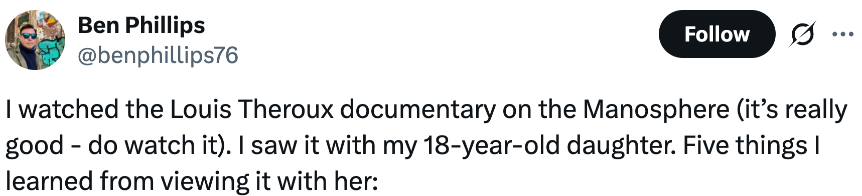 Louis Theroux's "Inside The Manosphere" sheds light on a dark corner of the internet that every parent of a teenager needs to be aware of. As a Viral Resident Writer at BuzzFeed, I cover politics, trending news, and pop culture through a lifestyle lens. Notably, prominent manosphere figure and "self-proclaimed misogynist" Andrew Tate declined to participate.