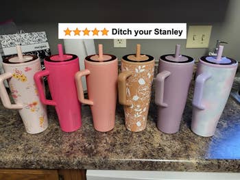 Promising review: "Honestly, the best purchase ever. I cannot rave enough about this 40-oz tumbler! My FAVORITE part is that it has a sealing ability that allows you to lock the lid, and it WILL NOT leak at all! I love the slender look of it, as opposed to Yeti or Stanley. Yeti and Stanleys both leak and have a gaudy, wide upper body of the tumbler and not a very smooth and slender appeal. I thought this was going to be too big, but it is PERFECT. It fits in any car cup holder, although I will say a bit snug in my 2012 lexus Is 250, but fits in my dodge truck and honda civic perfectly. And did I mention ...no PLASTIC AND DISHWASHER TOP RACK SAFE?!?! Seriously, don't wait! Purchase one! I will say, I wish that it had a bit more colors to choose from. I've seen a few magenta and teal colors advertised." —Caala