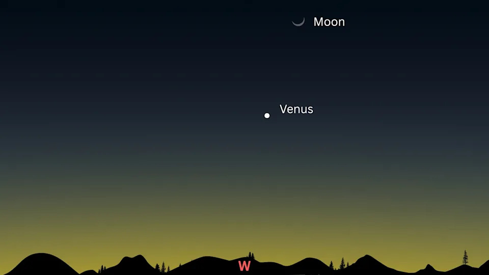 One of the youngest visible moons of the year appears alongside Venus on March 19