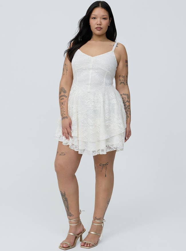 Promising review: "This is genuinely the best dress I’ve bought from Torrid. It’s SO cute, the material is good, it’s not too bulky, and I like the movement of the dress. I will say, I wish it was a bit tighter around the waist, but a corset can help with that. Good choice for a night out." —RaeSol020603