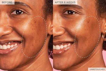 Here's what BuzzFeed editor Amanda Davis has to say about it: "This. gadget. is. worth it! 👏🏾 Using the Solawave was my first time introducing red light therapy into my skincare routine and the difference in my hyperpigmentation is honestly mind blowing. The tone of my face is much more even and the dark circles around my eyes have nearly disappeared. Essentially, it's like a mix of a jade roller (which I already love using anyway) and an LED mask in one...with microcurrent/vibration therapy, too. You can apply the specific Solawave activating serum or any conductive gel of your choice (I use a different one, myself!) and it will really absorb the benefits when used with the wand. I only use it once every other day (at night) and it's super relaxing. My skin is always ✨glowing✨ the next day!"