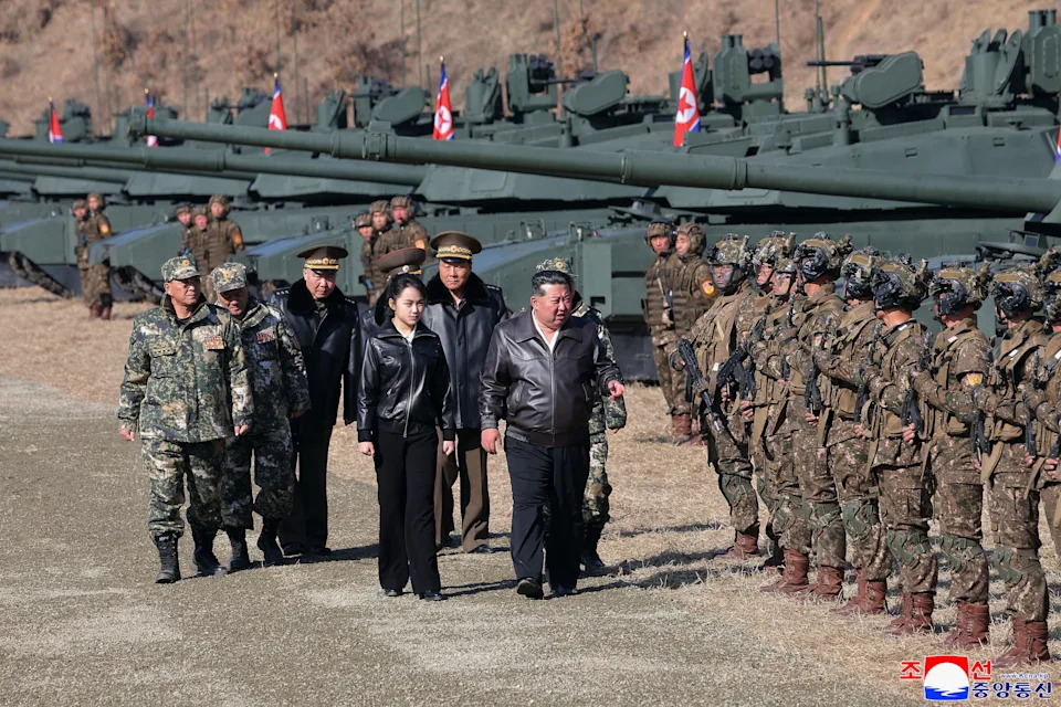 Teen daughter of North Korean leader Kim drives a tank while observing drill with her father