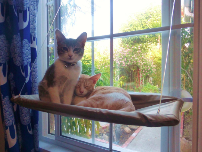 Make sure you clean the window and suction cups before installing. To get them to use the perch, place their bed or favorite treats on it to lure them up. Read BuzzFeed's write-up on this cat hammock.