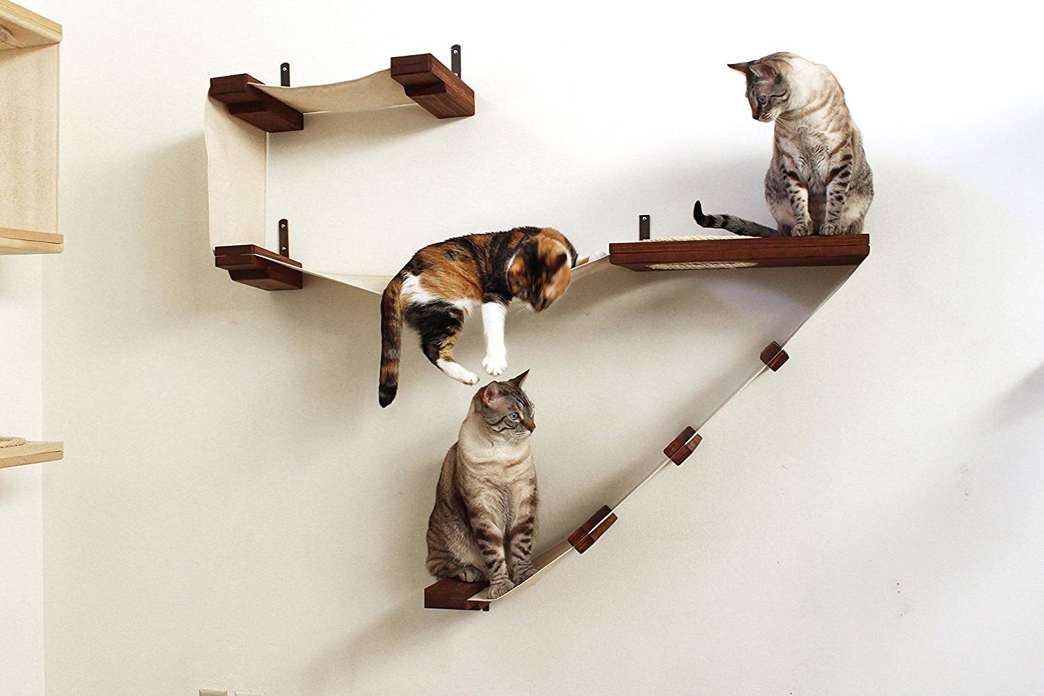 Promising review: "I was pleasantly surprised when I saw how well built this was! I initially had to use treats to get my cats to go up in it, now it's my oldest feline's favorite perch! He's 14 pounds and it holds him well! The brackets are spaced just right to fit into studs. It took two of us due to its size, but it only took us about five minutes total to install! My feline babies and I are very happy with this purchase!" —Kristi G.