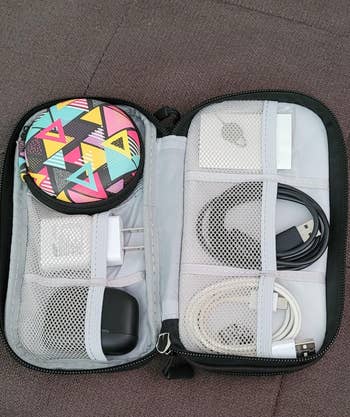 Promising review: "This case has been amazing for storing my earbuds, various loose cable connectors, chargers, etc. I am using it right now on a trip, and it has been fantastic for keeping these items in one convenient, organized place. It is lightweight and fits easily into my carry-on item when boarding the many flights I am taking. I’m pretty sure I will still be using it to keep all these items together and more easy to locate when I return home! I am so glad I bought this!" —V. Elia