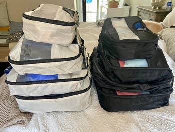 Promising review: "I was the most skeptical of all skeptics that these packing cubes would hold two weeks of clothes for my upcoming Italy trip, but they do!!! In the large cube, I fit four rompers (one is thick), four sundresses, and three pairs of pants; 11 outfits! The next size down has four pairs of shorts and approx. eight T-shirts, a sweater. Next size down has four swimsuits, a towel, belts, bras and other accessories… This is extremely impressive! I will never not use these cubes!!!" —sjaranyi