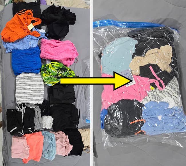 Promising reviews: "I am a heavy packer when I travel. I prefer to bring my own pillow due to allergies, but obviously, it's hard to pack a pillow in a suitcase. But if you use these bags, it's super easy! They're also great for fitting more clothes in your suitcase or keeping dirty clothes separate from clean ones. You just roll out the air, and it compresses to at least half the size or smaller. If you use them for storage and vacuum them out, they compress even more. So far, they haven't gotten damaged, and I've used them a lot. I'll never travel without them again." —shell0225